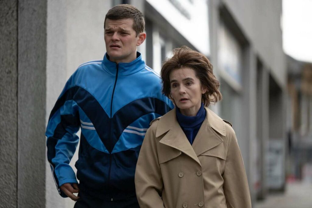 À la fin des années 80, la population britannique découvre pour la première fois la figure de John Davidson. Dans l’épisode John’s Not Mad de l’émission scientifique Q.E.D., diffusé sur la BBC, les téléspectateurs observent, durant une demi-heure, ce que signifie vivre avec le syndrome de la Tourette à l’adolescence. Les années passent, et celui qui était filmé par la télévision finit par reprendre le contrôle de son histoire pour sensibiliser à cette condition. Son parcours est aujourd’hui adapté au cinéma par Kirk Jones, réalisateur de Nanny McPhee. Bien qu’il soit paradoxal qu’un film remettant en cause les normes adopte les conventions du biopic, Plus fort que moi surprend par sa capacité à allier récit personnel combattif et didactisme assumé. Pour introduire son sujet avec une pointe de légèreté, Kirk Jones ouvre son film sur un flash-forward. Nous sommes en 2019, John Davidson s’apprête à être décoré par la reine Elizabeth II. Nerveux à l’idée de commettre l’irréparable devant sa Majesté, il hésite à fuir. Soutenu par ses proches, il décide finalement de s’y rendre. L’inévitable se produit et un tic injurieux vient rompre la bienséance de la cérémonie royale. À travers cette situation poussée à l’extrême, le film expose avec humour son sujet et accueille le spectateur avec chaleur. Une fois ce lien établi, il ne lâche plus son audience et montre, de manière plus frontale, ce que signifie vivre avec la Tourette. Dans la tradition la plus classique du biopic, ce qui intéresse ici le cinéaste, c’est la personne de Davidson et la manière dont le syndrome façonne son existence. De l’adolescence où les premiers tics compromettent une carrière prometteuse dans le football et fragilisent les liens familiaux à l’âge adulte, où la question de l’indépendance devient centrale. Le film, soucieux de son rôle éducatif, impressionne par la ténacité de ce parcours. Il aurait pu s’arrêter au procès que subit Davidson après une altercation, moment fort porté par le discours de son employeur, qui interroge frontalement les préjugés entourant la maladie. Mais vivre avec la Tourette, c’est enchaîner les combats, et Plus fort que moi choisit de les embrasser dans leur continuité. Le véritable adversaire n’est pas la maladie elle-même, mais le regard que la société porte sur elle. Le film ne parvient cependant pas toujours à restituer pleinement cette dimension combative. Une scène en particulier, censée célébrer une réussite personnelle, en témoigne. Alors que John obtient son premier emploi et que Dottie la femme qui l’a recueilli apprend qu’elle n’est finalement pas atteinte d’un cancer, ce moment de joie est immédiatement brisé par une agression violente. La scène, brève mais intense, révèle une tendance à surligner le drame au détriment de la respiration émotionnelle. Ce choix affaiblit légèrement le naturalisme de la mise en scène et le jeu de Robert Aramayo. Ces effets restent toutefois compréhensibles dans une logique de dramatisation visant à maintenir l’attention du spectateur.